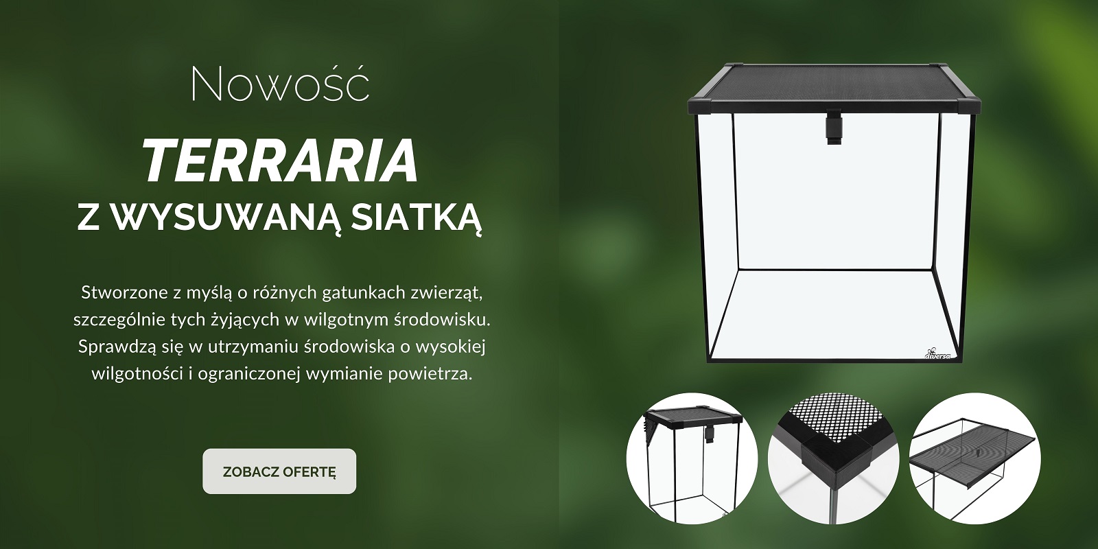 Oferujemy zarówno akwaria, jak i praktyczne zestawy akwarystyczne, idealne dla osób, które dopiero zaczynają swoją przygodę z akwarystyką. Mamy w asortymencie również wiele rozwiązań dla zaawansowanych hobbystów chcących dokonać zmian w swoich domowych akwariach. Oddzielną kategorią są terraria – dla gekonów, żółwi, węży czy pająków. Niezależnie od tego, czy Państwa pasją jest akwarystyka, czy terrarystyka, z Diversa hodowla zwierząt stanie się prostsza i przyjemniejsza.