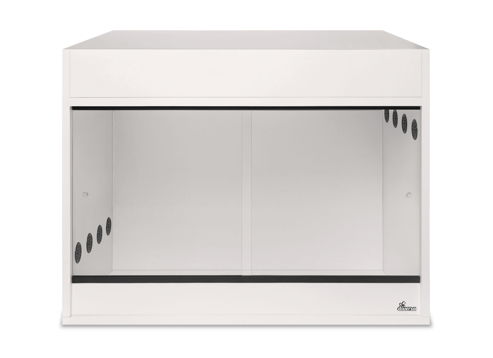 Terrarium do samodzielnego montażu, wyposażone w wentylacje grawitacyjną góra-dół oraz parę przesuwnych szklanych drzwiczek.