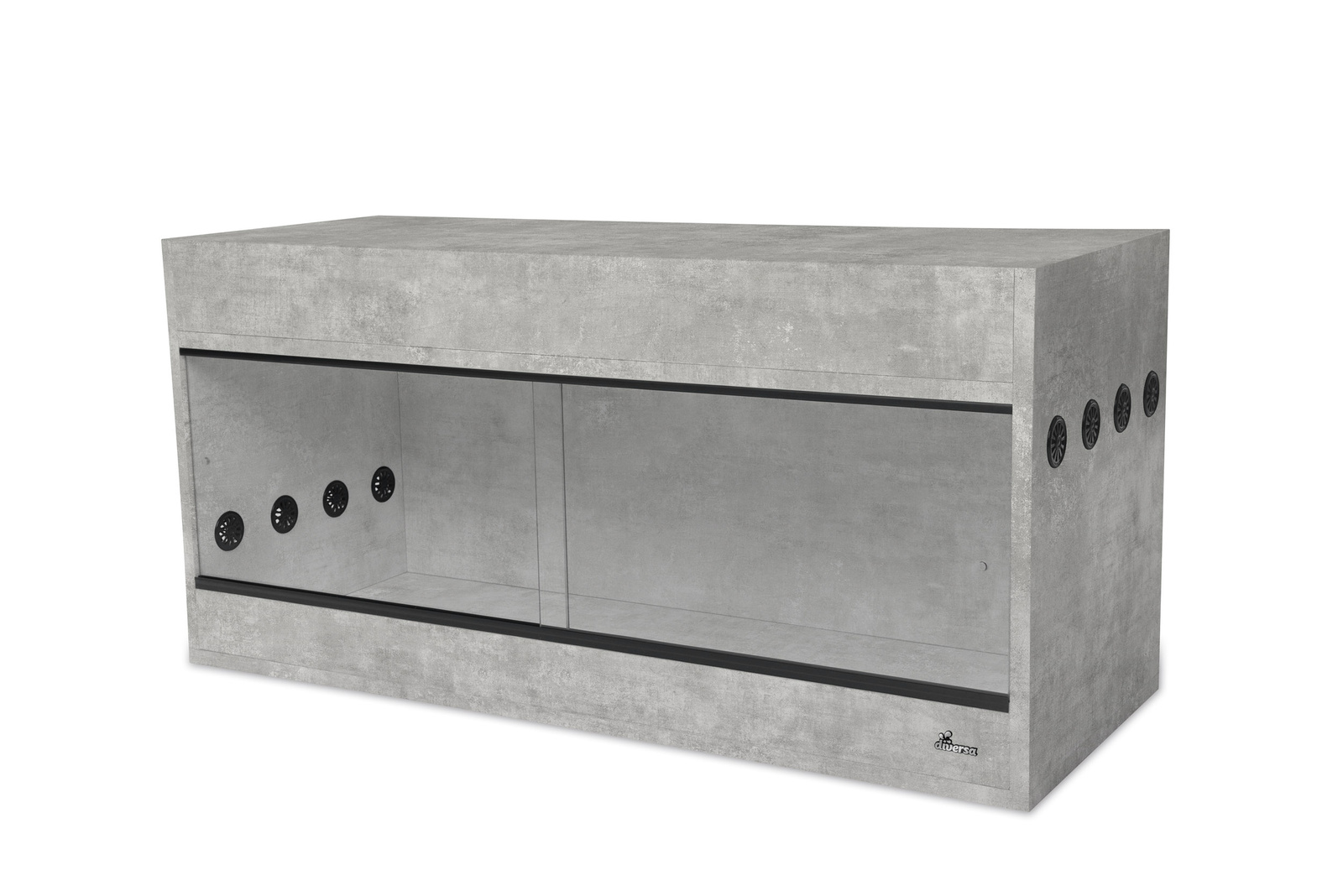 - efektywna wentylacja góra-dół – zastosowane kółka wentylacyjne z PCV o średnicy 40 mm zapewniają stały przepływ powietrza. Liczba otworów wentylacyjnych jest dostosowana do wielkości terrarium, co sprzyja utrzymaniu optymalnych warunków wewnątrz,