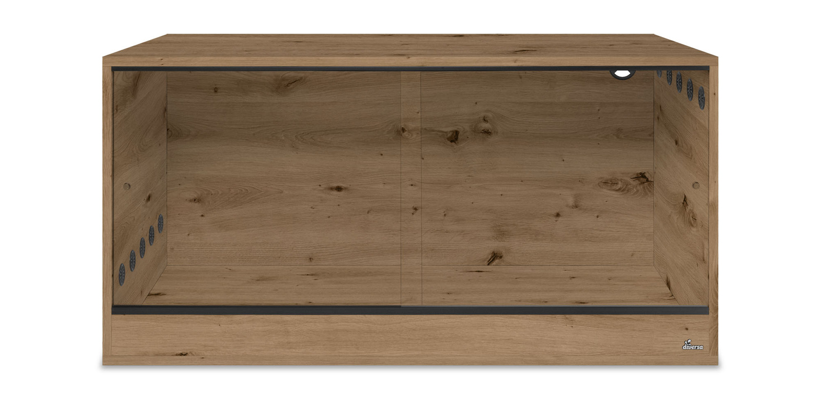 - efektywna wentylacja góra-dół – zastosowane kółka wentylacyjne z PCV o średnicy 40 mm zapewniają stały przepływ powietrza. Liczba otworów wentylacyjnych jest dostosowana do wielkości terrarium, co sprzyja utrzymaniu optymalnych warunków wewnątrz,