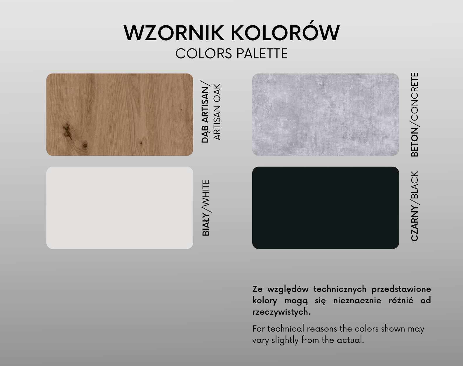 Minimalistyczny design sprawia, że szafki doskonale wpisują się w nowoczesne, jak i klasyczne wnętrza. Dzięki uniwersalnej formie łatwo je skomponować z innymi meblami w pomieszczeniu. To doskonałe połączenie praktyczności i estetyki, stworzone z myślą o wymagających hodowcach egzotycznych zwierząt. Szafki dostępne są w czterech kolorach: dąb artisan, biały, beton oraz czarny – co pozwala na jeszcze lepsze dopasowanie do indywidualnego stylu wnętrza.Zapytaj o produkt