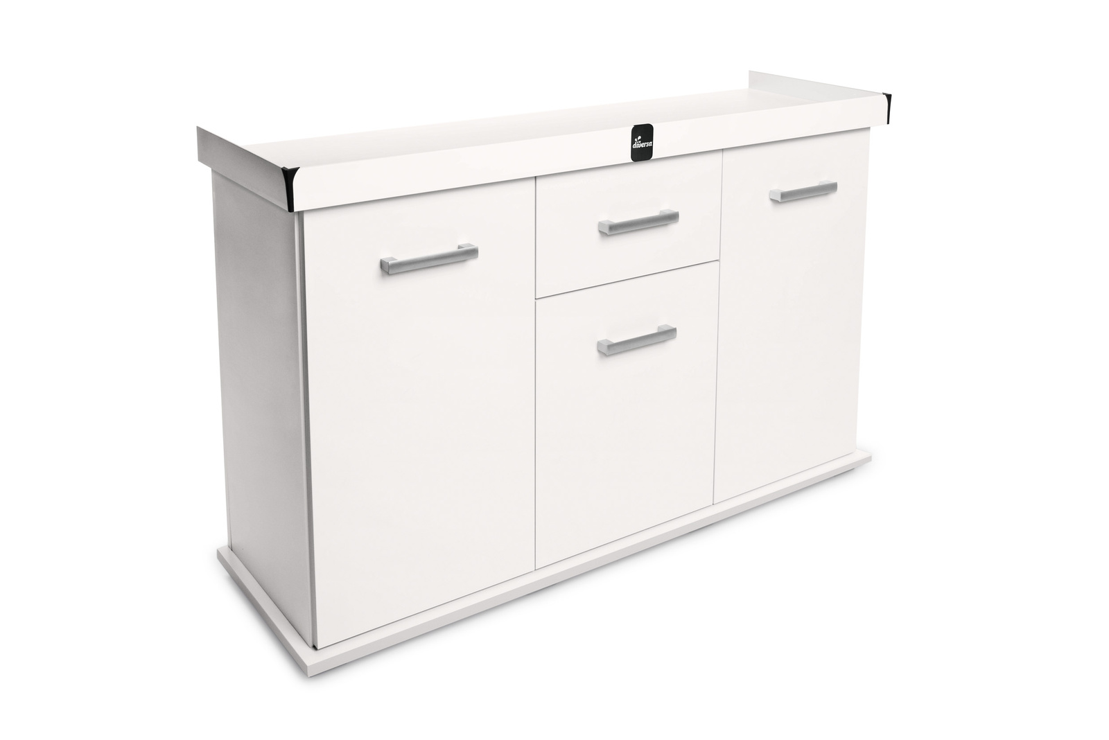 Starannie wykonana szafka z wysokiej jakości płyty meblowej o grubości 18 mm zapewnia stabilną i bezpieczną podstawę pod akwarium. Jej zabudowana konstrukcja, praktyczna szuflada i pojemna przestrzeń za drzwiami oferują wygodne miejsce na przechowywanie sprzętu akwarystycznego, zapasów karmy czy innych niezbędnych akcesoriów. Dzięki nowoczesnej, prostej formie doskonale komponuje się z wnętrzami w różnych stylach, stanowiąc estetyczne uzupełnienie całego zestawu.