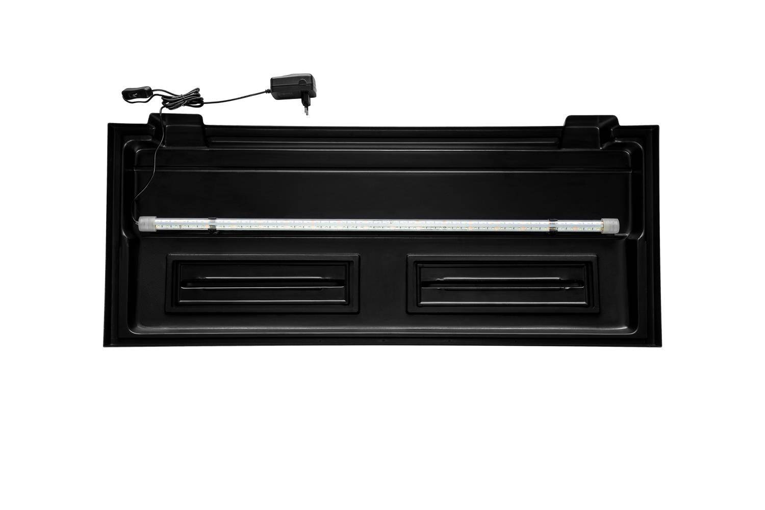 Pokrywa wykonana z tworzywa sztucznego została wyposażona w oświetlenie LED Expert białe o temperaturze barwowej 6500 K. Pokrywa posiada również funkcjonalne klapki, umożliwiające wygodne karmienie ryb.