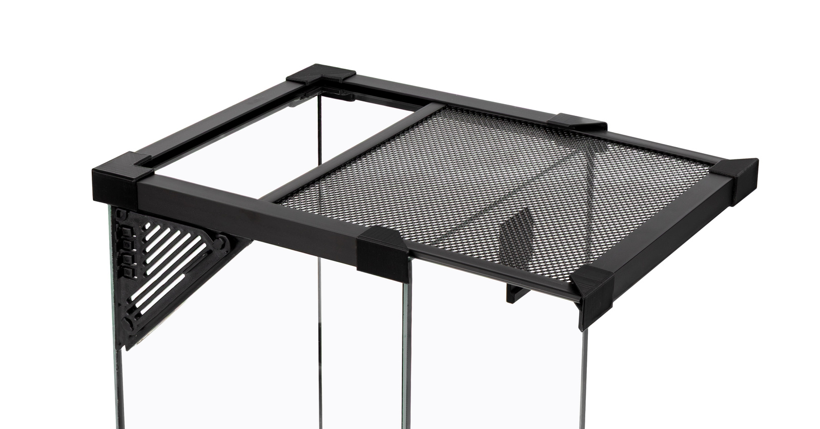 • Ramka z wysuwaną siatką zapewnia łatwy dostęp do wnętrza terrarium.