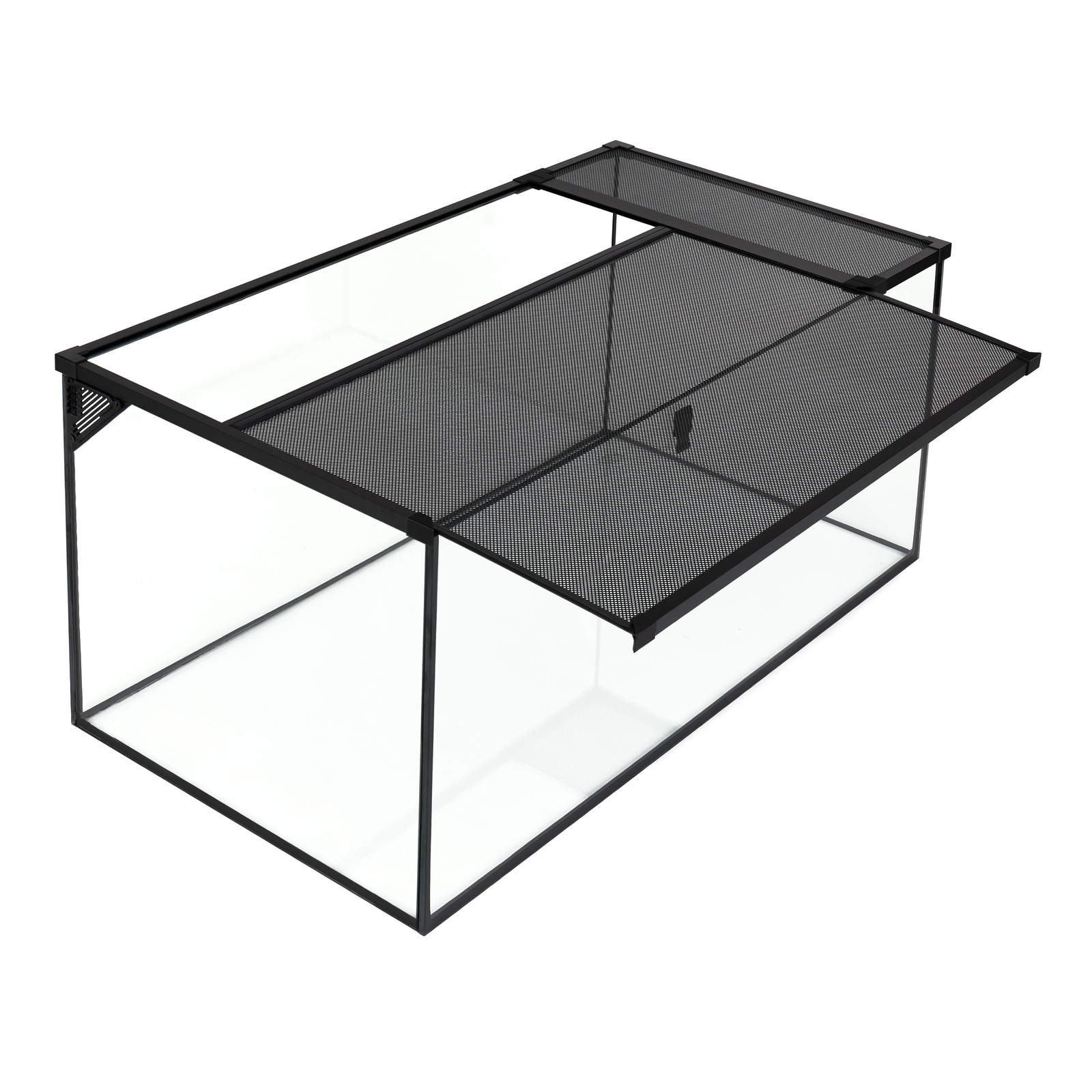 • Ramka z wysuwaną siatką zapewnia łatwy dostęp do wnętrza terrarium.